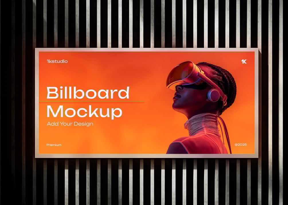 - Framing: The billboard is enclosed in a sleek, modern light-colored metallic frame.